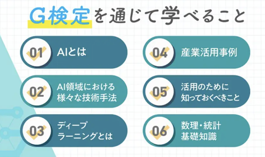 日本ディープラーニング協会(JDLA)が実施している検定試験です。AIやディープラーニングの仕組み・活用方法・法律・倫理といった知識を幅広く問う試験で、エンジニアに限らずビジネス職の人も多く受験しています。プログラミングやモデル構築の実技はなく、知識問題のみ。「AIを作る人」ではなく「AIを使う側・企画する側」の基礎力を証明する位置づけです。